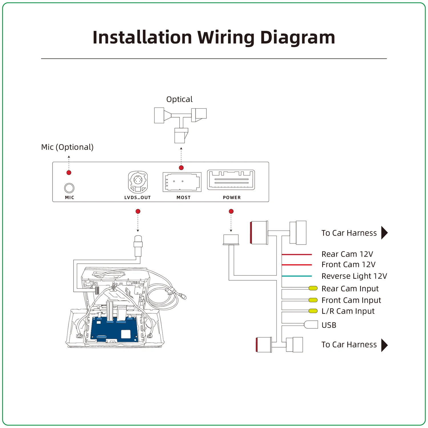 Compatible with vehicles equipped with MOST fiber optic audio system